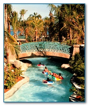 We discovered that if you want to use one of the many umbrellas there they cost $20. Geeze, I knew resorts get you for every little thing, but come on. HAHA! Well, fortunately we just went into the ocean and bobbed for a half-hour. The surf was still pretty strong so we didn't stay in too long. I did get toppled by a wave on my way out and ended up with sand everywhere. In my hair and even in my swim suit pockets! It took forever to wash it all off. It sticks to your body like tape. After the ocean, we headed over to the lazy river again. We made a couple laps around the river then headed over to the Royal Tower pool.