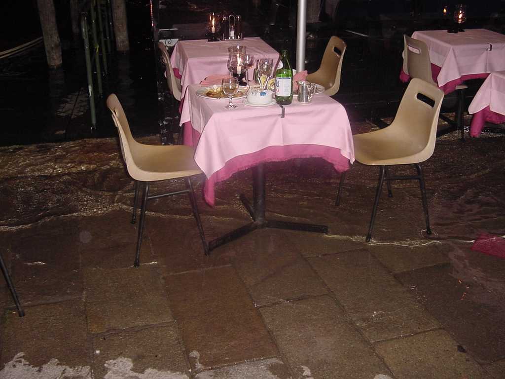 we had to abandon the table and wait over by the wall. We were in fear of getting soaked if we